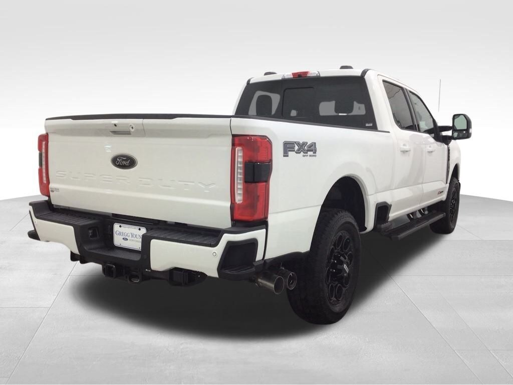 4WD, 3.73 Axle Ratio, 4-Way Adjustable Headrests, 4-Wheel Disc Brakes, 410 Amp Dual Alternators, 5th Wheel/Gooseneck Hitch Prep Package, 6" Ebony Black Angular Running Boards, 8 Speakers, ABS brakes, Adaptive Cruise Control w/Stop-and-Go, Adjustable pedals, Air Conditioning, Alloy wheels, AM/FM radio: SiriusXM with 360L, Auto High-beam Headlights, Auto-dimming Rear-View mirror, Automatic High Beam, Automatic temperature control, Black Appearance Package, Black Painted Front Grille Surround, BLIS w/Cross-Traffic Alert, Body Color Front & Rear Bumpers, Brake assist, Bumpers: chrome, Compass, Delay-off headlights, Driver door bin, Driver vanity mirror, Dual AGM 68 AH Battery, Dual front impact airbags, Dual front side impact airbags, Ebony Black Painted Mirror Caps, Electronic Stability Control, Emergency communication system: SYNC 4 911 Assist, F-250 >10K GVWR Package, Flow-Through Console, Front & Rear Parking Sensors, Front ActiveX Trimmed 40/Console/40 Seats, Front anti-roll bar, Front Bucket Seats, Front Center Armrest, Front dual zone A/C, Front fog lights, Front License Plate Bracket, Front reading lights, Fully automatic headlights, FX4 Off-Road Package, Garage door transmitter, Head-Up Display, Heated door mirrors, Heated front seats, Heated rear seats, Heated steering wheel, High Capacity 11.6" Axle Upgrade Package, Hill Descent Control, Illuminated entry, Lane-Keeping System, Lariat Ultimate Package, LED Roof Clearance Lights, Low tire pressure warning, Memory seat, Navigation System, Off-Road Specifically Tuned Shock Absorbers, Outside temperature display, Overhead airbag, Overhead console, Panic alarm, Passenger door bin, Passenger vanity mirror, Pedal memory, Post-Collision Braking, Power door mirrors, Power driver seat, Power passenger seat, Power steering, Power windows, Power-Deployable Running Boards, Power-Sliding Rear-Window w/Defrost, Pre-Collision Assist, Privacy Glass, Pro Trailer Backup Assist, Pro Trailer Hitch Assist, Radio: B&O Sound System by Bang & Olufsen, Radio: B&O Unleashed Sound System by Bang & Olufsen, Rain sensing wipers, Rapid-Heat Supplemental Cab Heater, Rear Parking Sensors, Rear reading lights, Rear seat center armrest, Rear step bumper, Rear Wheel Well Liners (Pre-Installed), Rear window defroster, Remote keyless entry, Security system, SiriusXM Radio w/360L, Speed control, Split folding rear seat, Steering wheel mounted audio controls, SYNC 4 w/Enhanced Voice Recognition, Tachometer, Tailgate Step & Handle, Telescoping steering wheel, Tilt steering wheel, Tough Bed Spray-In Bedliner, Traction control, Trip computer, Turn signal indicator mirrors, Twin Panel Power Moonroof, Unique FX4 Off-Road Box Decal, Upfitter Switches (6), Variably intermittent wipers, Ventilated front seats, Wheels: 18" Bright Machined & Carbonized Gray Alum, Wheels: 20" Machined & Ebony Black High Gloss. 4WD 10-Speed Automatic 6.7L High Output Power Stroke V8 Diesel