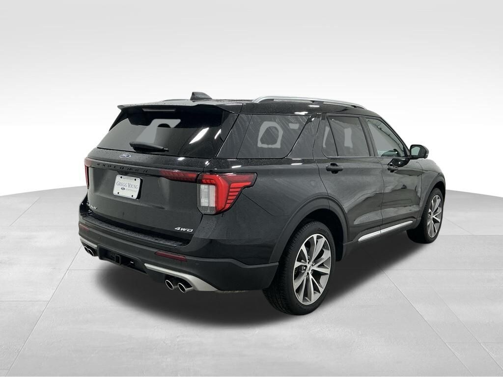 Gregg Young Ford is very proud to offer this charming-looking 2025 Ford Explorer Platinum in Agate Black Metallic, 4WD, 14 Speakers, 3.58 Non-Limited Slip Rear Axle, 3rd row seats: bench, 4-Wheel Disc Brakes, ABS brakes, ActiveX Trimmed Sport Captain's Chairs, Air Conditioning, Alloy wheels, AM/FM radio: SiriusXM with 360L, Apple CarPlay/Android Auto, Auto High-beam Headlights, Auto-dimming door mirrors, Auto-dimming Rear-View mirror, Automatic temperature control, Brake assist, Bumpers: body-color, Compass, Delay-off headlights, Driver door bin, Driver vanity mirror, Dual front impact airbags, Dual front side impact airbags, Electronic Stability Control, Emergency communication system: 911 Assist, Exterior Parking Camera Rear, Four wheel independent suspension, Front anti-roll bar, Front Bucket Seats, Front Center Armrest, Front dual zone A/C, Front fog lights, Front reading lights, Fully automatic headlights, Garage door transmitter, Heated door mirrors, Heated front seats, Heated rear seats, Heated steering wheel, Illuminated entry, Internet access capable: FordPass Connect 5G, Knee airbag, Leather steering wheel, Low tire pressure warning, Memory seat, Navigation System, Occupant sensing airbag, Outside temperature display, Overhead airbag, Overhead console, Panic alarm, Passenger door bin, Passenger vanity mirror, Power door mirrors, Power driver seat, Power Liftgate, Power moonroof, Power passenger seat, Power steering, Power windows, Radio data system, Radio: B&O Sound System by Bang & Olufsen w/HD, Rain sensing wipers, Rear air conditioning, Rear anti-roll bar, Rear reading lights, Rear window defroster, Rear window wiper, Remote keyless entry, Security system, Speed control, Speed-sensing steering, Speed-Sensitive Wipers, Split folding rear seat, Spoiler, Steering wheel mounted audio controls, Tachometer, Telescoping steering wheel, Tilt steering wheel, Traction control, Trip computer, Turn signal indicator mirrors, Variably intermittent wipers, Ventilated front seats, Wheels: 20" Luster Nickel-Painted Aluminum.